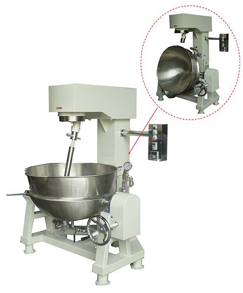 ◆不銹鋼雙重槽身,結構超強堅固,安全壓力閥設備,攪拌桶可傾倒,蒸氣式間接加熱,攪拌物絕不燒焦。